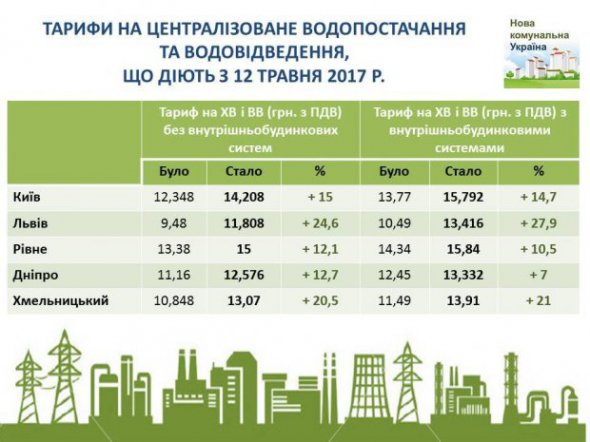 Тарифы на холодную воду выросли в Киеве, Львове, Днепропетровске, Хмельницком, Ровно, Каменец-Подольском, Павлограде, Лисичанске, Коломые и других городах.