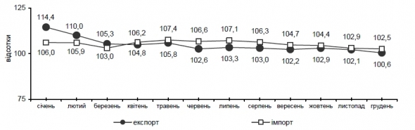 Коэффициент покрытия экспортом импорта составил 0,81 (0,83 в 2011 году).