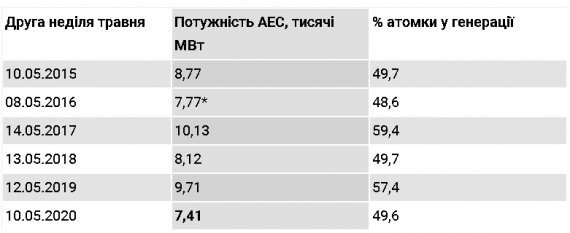 О наличии тренда на уменьшение мощностей АЭС также свидетельствуют данные по потреблению по каждой второй субботы мая в последние годы.