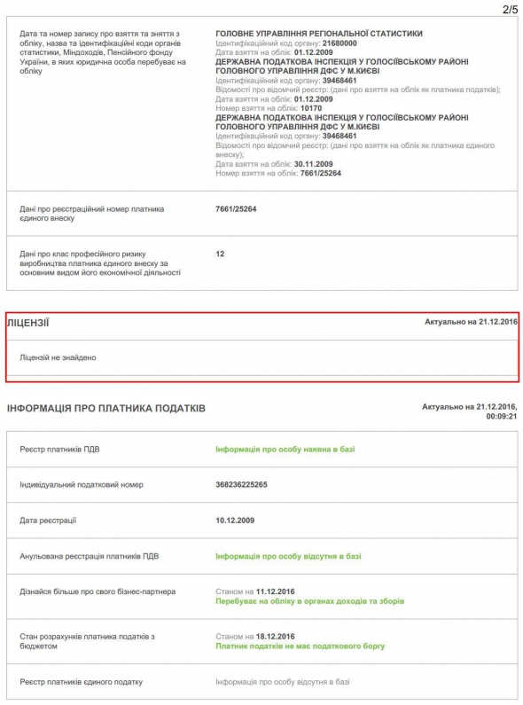 Кроме того, Корольчук обратил внимание на то, что второе по наименьшей цене предложение по закупкам установило ООО "Викториос компани". По его словам, данная структура также зарегистрирована по тому же адресу, что и "Пивничгазресурс" – Киев, ул.Короленковская 4, и принадлежит тем же владельцам.