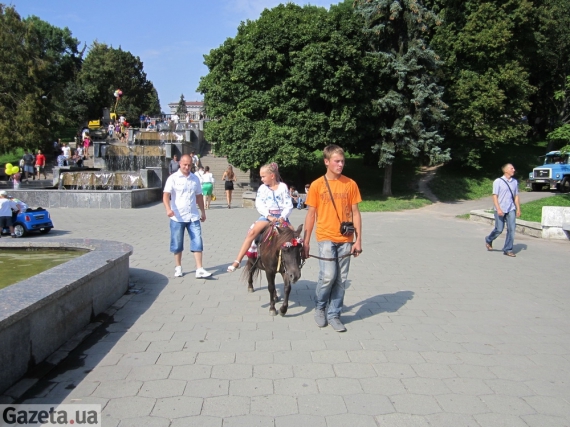 Вдвое меньше зарабатывает Владимир Левковский из Луцка. На пони Орлике он катает детей в парке Леси Украинки. За прогулку вокруг фонтана берет всего 10 грн. На заработанные средства хочет приобрести еще два пони и создать спортивно-оздоровительный клуб.