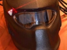 "Цвет черный, визор прозрачный. Оборудование: лазерный прицел "Хищник" (три лазера), 22 дреда с наконечниками (длина 34 см). Цена: 800 у.е. Возможные дополнения и изменения. Шлем изготавливается на базе мотошлема IXS HX 540 Pirate".