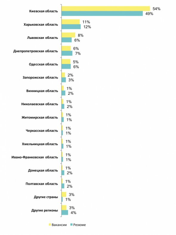 За последние 30 дней для программистов прибавилось 2975 вакансий. В целом 54% всех предложений работы - в Киеве. На втором месте находится Харьковская обл. Третьем - Львов. Программистов ищут в Житомире, Полтаве, Ивано-Франковске. Работу предлагают за рубежом.