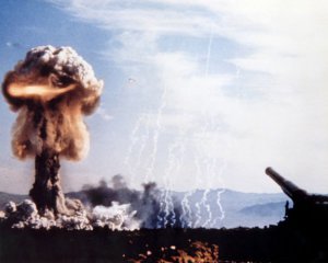 22 апреля 1952 года состоялось испытание ядерной бомбы в штате Невада. 35 млн американцев стали свидетелями прямого репортажа с места испытаний.