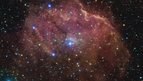 "Галактика типа EN (эмиссионная туманность), также известная как "Куриная туманность". Космический объект расположен примерно в 6 тыс. световых лет от Земли. Вокруг туманности оранжевые, белые и голубые точки представляют собой звезды. Розовые точки На изображении - пары водорода, освещенные интенсивным излучением новорожденных звезд", - сказано в сообщении.