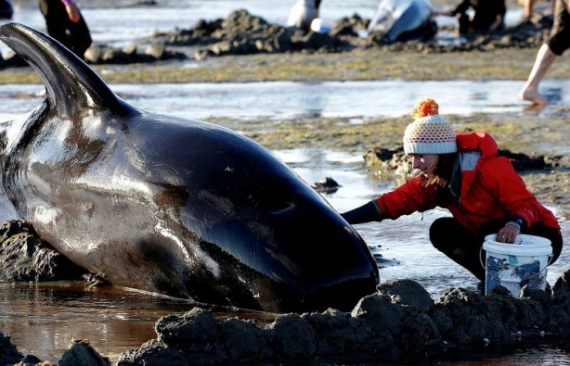 На берег Фаруэлла-Спит y Новой Зеландии выбросились более 400 дельфинов-гринд. Они распространенный вид в водах Новой Зеландии. Их вес - около 2 т, длина - до 6 м.
