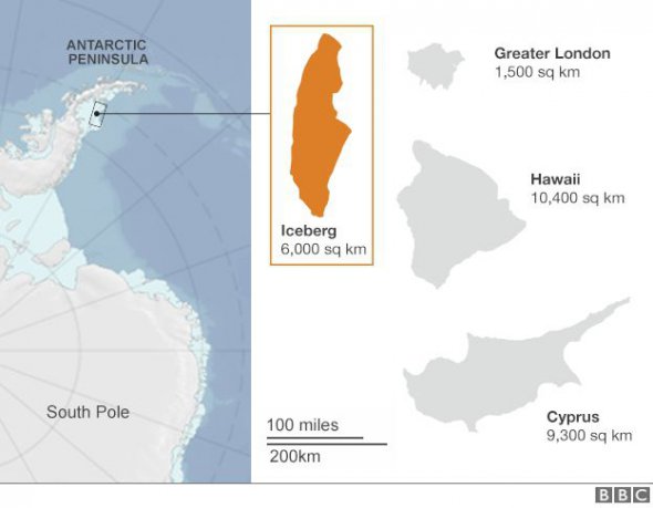 "На данный момент мы видим один большой айсберг. Скорее всего, он со временем расколется на мелкие кусочки. Возможно, в течение многих лет он останется в том же районе, где он находится сейчас. В таком случае его масса длительное время не будет существенно уменьшаться ", - говорит профессор гляциологии британского Университета Суонси Адриан Лакман.