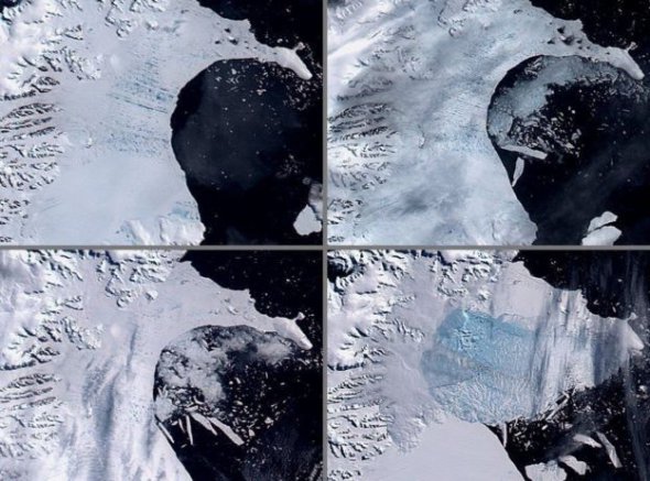 От шельфового ледника Ларсена С в Антарктике откололся айсберг. Его площадь более 6 тыс. кв. км. Толщина - 200 м. Вес - 1 трлн. т.