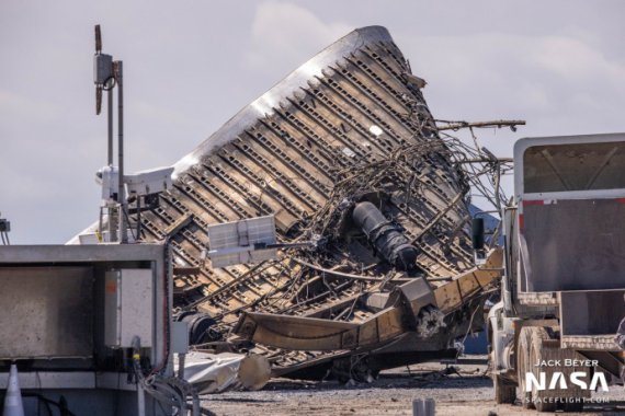 В SpaceX заявили, что после удачных испытаний "произошла быстрая незапланированная разборка Starship SN10", и показали его обломки.