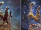 "Столпы Творения впервые были сфотографированы в 1995 году с помощью телескопа Hubble. Новое изображение поможет ученым обнаружить молодые звезды, которые рождаются в этом месте, а также более точно подсчитать количество пыли и газа. Благодаря последним изображениям телескопа исследователи смогут улучшить модели механизма формирования звезд", – говорится в сообщении.