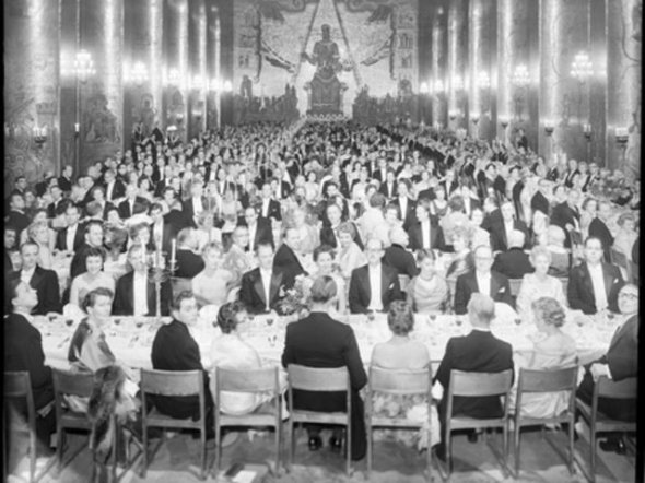 Ритуально вручения Нобелевской премии состоит из трех мероприятий - собственно вручения, Нобелевской ужина в присутствии королевской семьи и около 1300 гостей. Завершает церемонию награждения Нобелевский концерт, который считается одним из главных музыкальных событий Европы. Каждый лауреат получает из рук монарха золотую медаль с изображением учредителя премии Альфреда Нобеля и диплом.