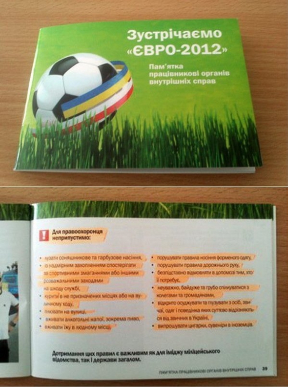 В Интернете появились фотографии памятки сотрудникам органов внутренних дел Украины "Встречаем Евро-2012" о том, как вести себя во время чемпионата.