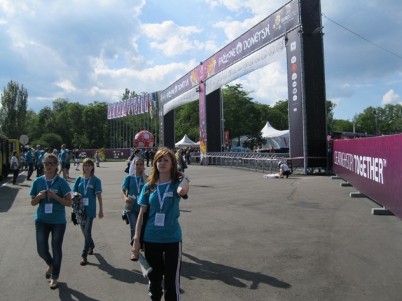 В дни матчей (первый состоится в понедельник, 11 июня) между фан-зоной и стадионом будут курсировать автобусы. К Евро-2012 Донецк закупил новые автобусы на сумму 360 млн грн., с их помощью собираются перевозить 15-20 тысяч фанов, в обоих направлениях. Можно добраться и пешком, говорят донецкие чиновники, для чего разработан специальный маршрут. Чтобы попасть на стадион кратчайшим путем через парк Щербакова, далее через бульвар Пушкина и пр.Мира болельщикам понадобится около часа, так как фан-зона расположена в 4,5 км. от стадиона "Донбасс Арена".