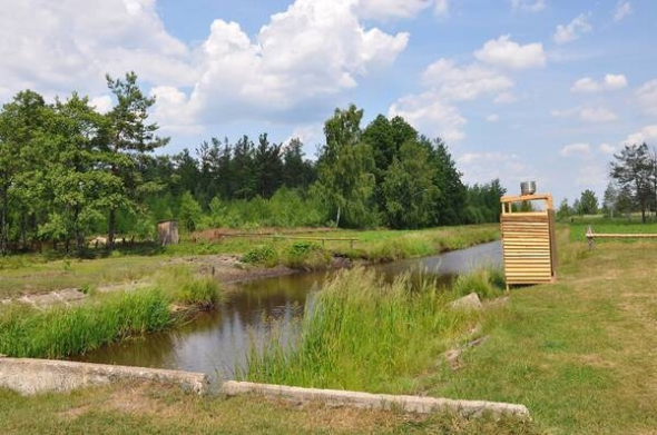 На фото - українсько-білоруський кордон біля села Познань Рокитнівського району Рівненської області. Канал, туалет (ліворуч) і саморобна душова кабіна розташовані з українського боку. Збудували їх наші прикордонники. Біля Познані вони облаштували тимчасовий пост, щоб не пропускати українців-нелегалів на територію сусідньої країни.