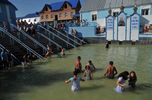 - Я жінку сюди свою привіз, - розповідає вчитель Віктор Клименко. - Аж із Чернівців. Вісім років тому вже були тут, тепер усе змінилося - комерція на кожному кроці. Святу воду в пластик закрутили й продають. У звичайному одязі лізти не можна. Жінка забула нічну сорочку. Тут їх продають від 50 до 200 гривень.