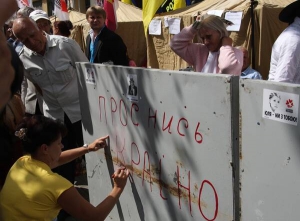 26-річна Ірма Крат із Гадяча на Полтавщині йде до підземного переходу на столичному Хрещатику. Купує за 100 грн балончик червоної фарби для взуття. 12 фломастерів, якими вона обмальовувала металеві щити поблизу Печерського райсуду, забрали міліціонери. Розкладає на асфальті привезене з дому простирадло. Великими літерами пише: "Янека на зону" і малює поруч грати. Разом із земляком Олексієм Пироговим несуть плакат до мітингуючих на підтримку Юлії Тимошенко. Вигукують: