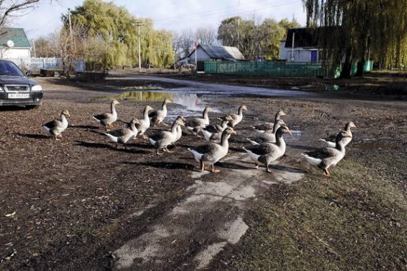 Хата 92-річної Олени Дворник за 50 м від сільради. Перед двором велика калюжа. У ній купаються гуси й качки. Тетяна Григорівна заходить у двір, 10 хв стукає в шибку. Ніхто не відчиняє.