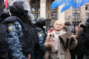 - Сьогодні - сьома річниця революції, - виступає зі сцени нардеп-"бютівець" 35-річний Андрій Шевченко. - Тоді ми навчилися говорити "ні" тим, хто говорив нам "за вас уже все вирішено на століття вперед". Тоді зрозуміли, що тільки ми будемо вирішувати, як жити нам і нашій країні. Зібралися саме тут, бо два символи помаранчевої революції - Юлія Тимошенко і Юрій Луценко - зараз знаходяться за ґратами.
