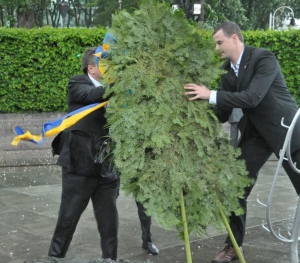 У столичному парку Слави президенти України та Росії покладають вінки до пам'ятника Невідомому солдату. Віктор Янукович підходить до поминального вінка. Поправляє на ньому стрічки, робить крок назад, нахиляється в поклоні. Від сильного пориву вітру той падає на голову президентові. Підбігають троє охоронців і ставлять вінок на місце. Янукович поправляє скуйовджену зачіску. А охоронці Медведєва кидаються притримувати його вінок, щоб також не впав.