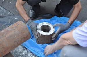 В одному із трьох контейнерів митники виявляють 34 металеві труби, що використовувалися в бурильних установках. Сканування сторонніх предметів не виявляє. Правоохоронці просять розвантажити брухт і розпилюють труби.