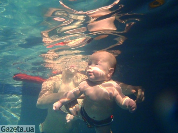 8-месячная Мария Довбня уже может переплыть бассейн под водой.