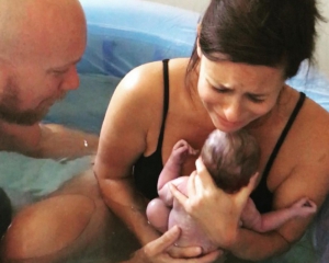 Видео наполнено невероятными эмоциями: Одра полностью контролирует ситуацию. При этом рядом с ней в бассейне с водой находится супруг. После нескольких потуг на свет появляется малыш, и женщина со слезами на глазах укладывает младенца себе на грудь.
