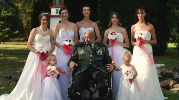 Поэтому семь дочерей прошли вместе с отцом свадебной дорожкой к арке молодоженов. Это был сюрприз для Вилли, его девочки тщательно скрывали свои планы.
