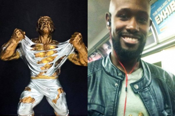 Дизайнер сделала бронзовую статуэтку в виде самоотверженного мужчины, разрывающего на себе одежду с надписью: "Достойному чуваку. Первому мужчине, предложившему беременной женщине место в метро за две беременности".