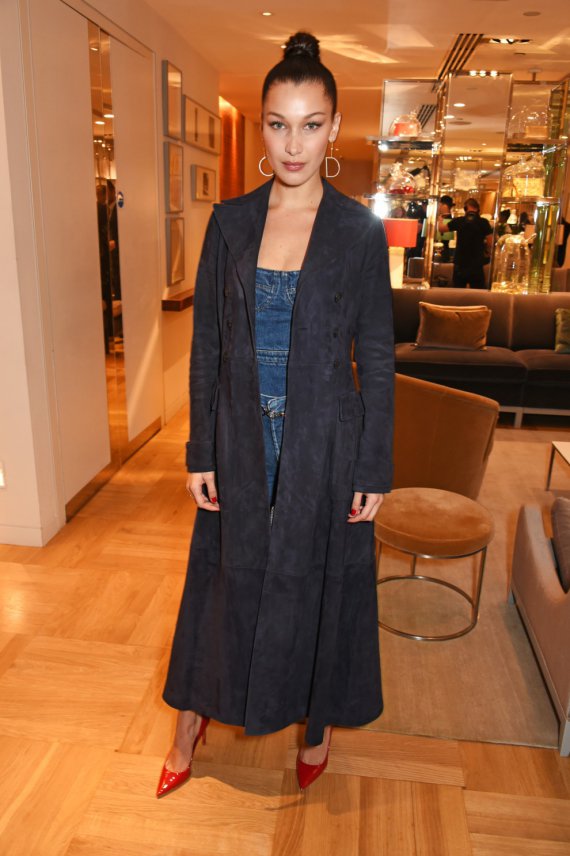 Одна из самых популярных моделей современности Белла Хадид продемонстрировала умение носить деним. В лондонском универмаге Selfridges красавица представила новую тушь Pump N Volume Mascara. Предстала перед публикой в ​​джинсовом бюстье и потертых укороченных джинсах с необработанным краем. Вся одежда от бренда Dior.