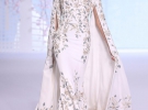Главное платье коллекции - свадебное. Оно многослойное, дополненное атласным бюстье и рукавами кимоно. Силуэт с 3D шелка и металлической нити. Он расшит шелковыми лепестками из органзы, украшен жемчугом и кристаллами.