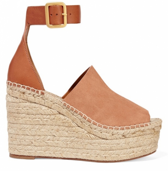Модный дом Chloe предлагает модницам непринужденную расслабленность и французский шик. Босоножки на джутовой платформе. Они сшиты из мягкой замши натурального рыжего оттенка. Эта обувь комфортная и элегантная одновременно.