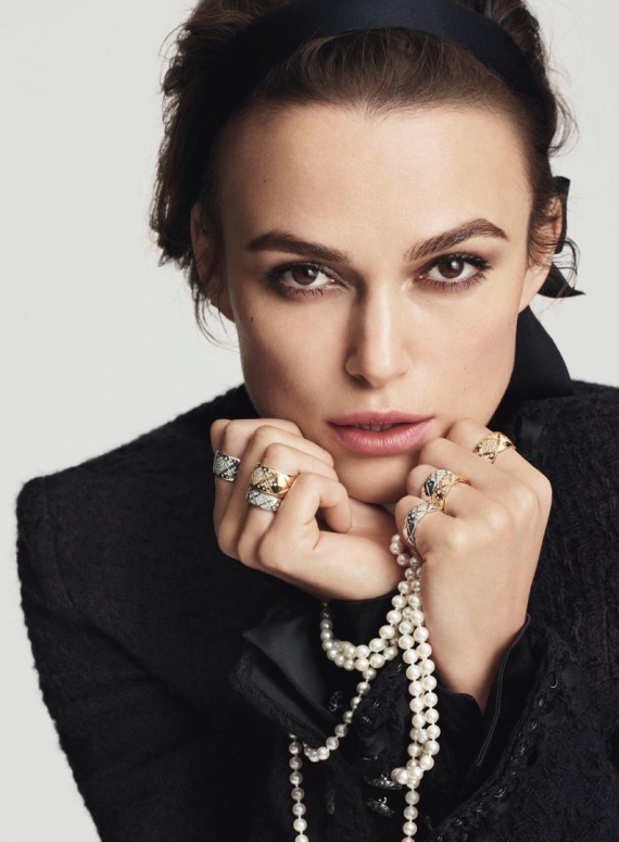 Лицом новой кампании украшений Chanel стала актриса Кира Найтли. Коллекция называется Coco Crush. Звезда предстала в классическом образе бренда - черная одежда, убранные волосы с ободком, естественный макияж.