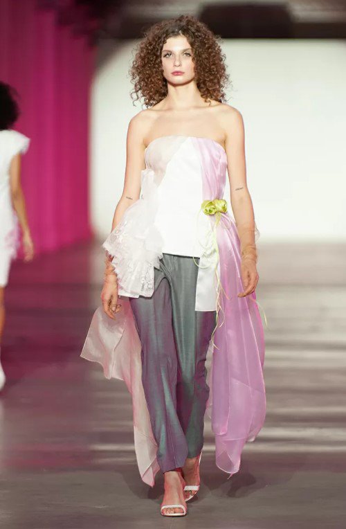 "В новой коллекции дизайнер рассматривает романтизм сквозь призму фильма "Плезантвиль" (1998) режиссера Гэри Росса. Так же, как статический мир Плезантвиля становится цветным, а каждый его житель начинает открывать в себе новые чувства, так и наряды Darja Donezz с каждым новым выходом становятся более насыщенными и яркими", - описали коллекцию на сайте Ukrainian Fashion Week.