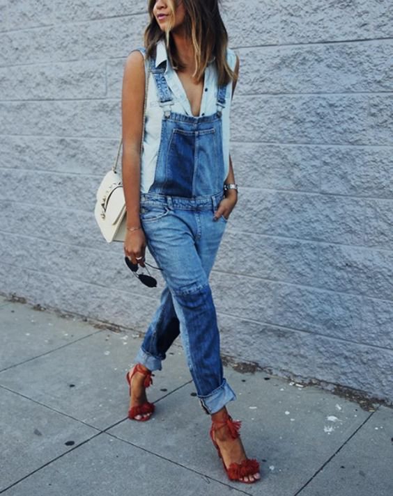 Обратите внимание, что обувь можно выбирать любую. В паре с комбинезоном гармонично смотрятся кеды и кроссовки. Для вечернего мероприятия обратите внимание на босоножки на платформе и каблуках.