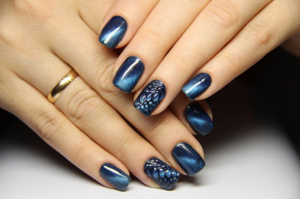 Незаменимый помощник, помогающий визуально вытянуть короткие ногти – лак, создающий эффект "кошачьего глаза".