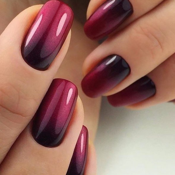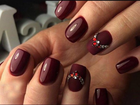 В отношении ногтей прекрасно работает правило темных оттенков, которые зрительно удлиняют ногтевую пластину. Это не обязательно должен быть черный цвет, с коррекцией длины великолепно справляются такие оттенки: бордовый, вишневый, коричневый, синий, фиолетовый, темный хаки.