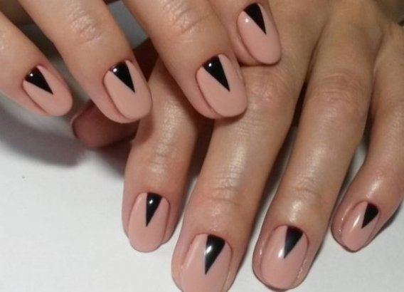Геометрические рисунки в виде треугольника, с вершиной, направленной к краю ногтевой пластины, визуально делает ее тоньше и длиннее.