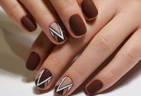 Коричневые оттенки – идеально подходят для осеннего маникюра и способны визуально удлинить ногти. Коричневый цвет сочетается с повседневной и деловой одеждой, но если к нему добавить перламутр или блестки, получится вечерний вариант.