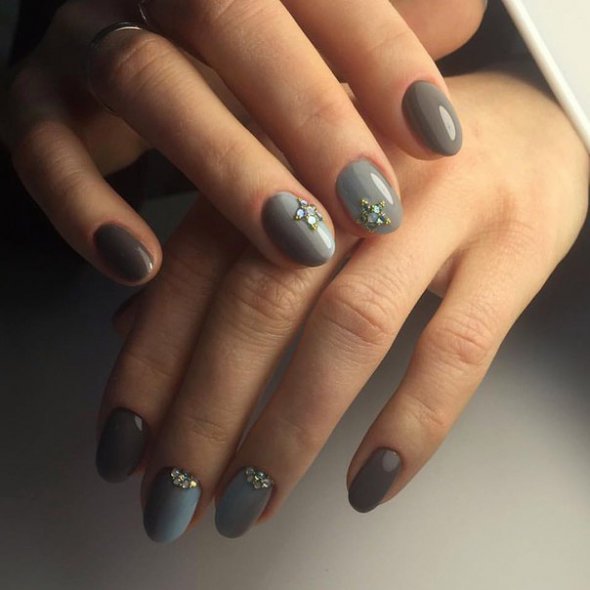 Серый цвет – считается универсальным оттенком, который можно использовать как самостоятельно, так и в качестве основы для дизайна. Металлический отблеск визуально вытягивает ногти и придает им крепкий "стальной" вид. Жемчужно-серый цвет выглядит изысканно и аристократично, и подходит к любому случаю.