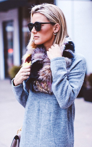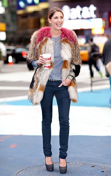 Девиз этого образа: "Чем проще, тем лучше". В данном случае цветная шуба придаст изюминки и станет главным акцентом.