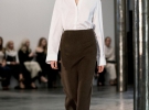 Сестры Мэри-Кейт и Эшли Олсен с каждым сезоном усиливают позиции своего бренда The Row. Осенне-зимняя коллекция получилась сдержанной и элегантной. Основу составили прямые силуэты длины макси.