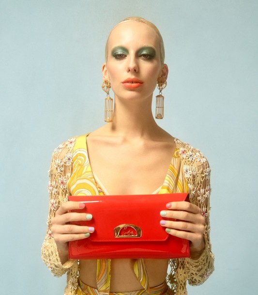 Также в кампанию Christian Louboutin вошли аксессуары - кожаные маленькие сумки на коротких ручках и лакированные клатчи-конверты.
