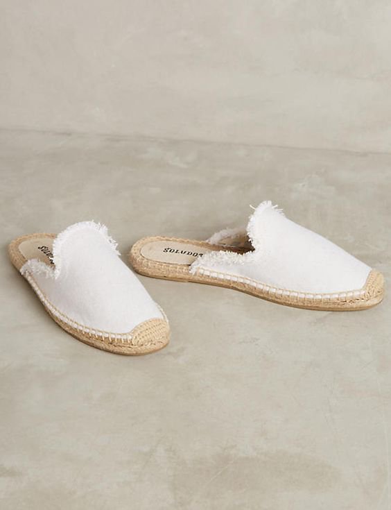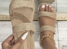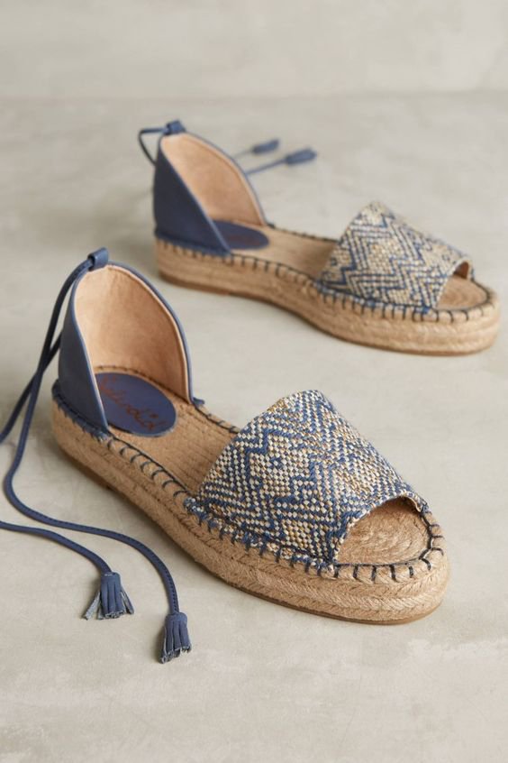 Комбинированные шлепанцы из ткани или текстиля с плетеной или пробковой подошвой.