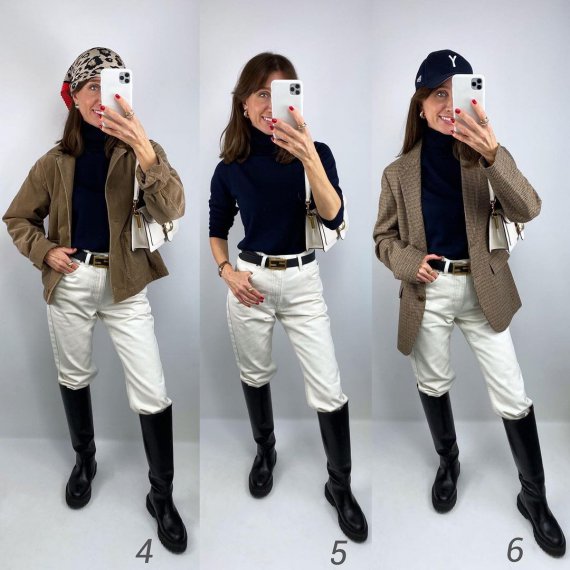 В этом сезоне модным является жокейский и английский стиль. Одежда типа 1970-х также стильна. Водолазка подходит ко всем ним.