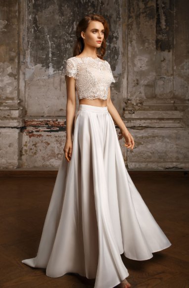 Кроме вечерних платьев, на выпускной 2018 отличным выбором станет комплект кроп-топ + юбка. Она может быть как длины миди, так и до пола.
