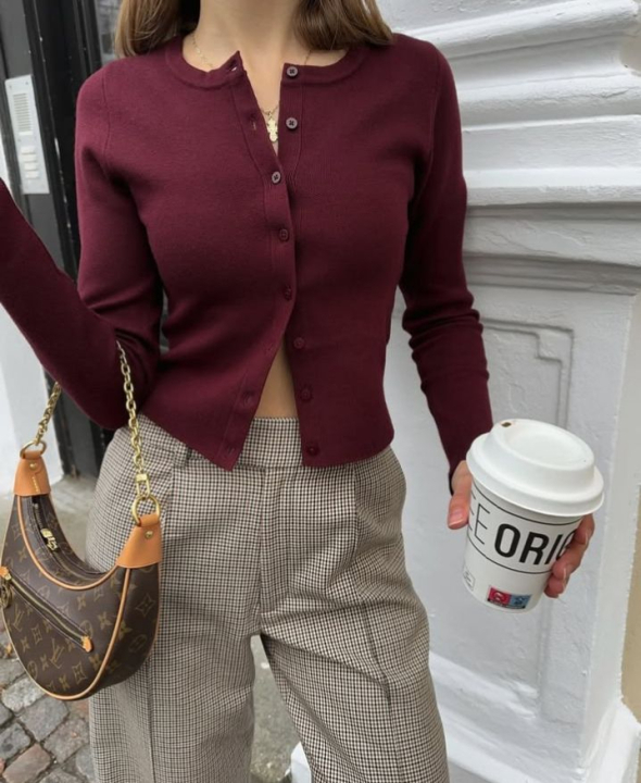 Не яркое, а приглушенное - как спелый гранат в тени. Бордовый возвращается в новой версии: менее глянцевый, более бархатистый.