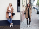2. Длина пальто. Это один из ключевых моментов, который сделает образ актуальным. Длина должна быть до колен или ниже, но не в пол.