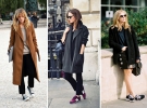 1. Беспроигрышный вариант - пальто простого кроя. Это может быть прямая модель или кокон. Приталенные силуэты со спортивной обувью теряют свою актуальность.