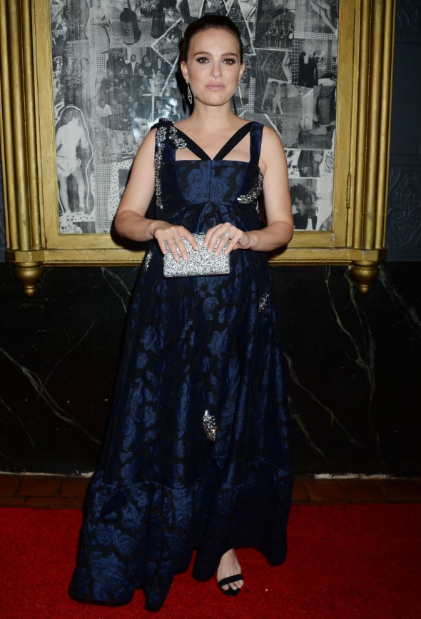 Голливудская актриса Натали Портман поразила публику на церемонии вручения престижных кинопремий Huading Global Film Awards в Лос-Анджелесе. Звезда появилась в пышном платье темно-синего цвета бренда Erdem. Юбка на высокой талии удачно подчеркивала округлые формы. Верх состоял из топа и широких бретелек украшенных камнями. К наряду надела босоножки Jimmy Choo и клатч Vince Camuto. Образ дополняли украшения от Monique Pean.