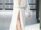 Основная коллекция представлена легкими платьями до пола в сочетании с юбками бельевого стиля, удлиненными твидовыми жакетами со струящимися брюками. Внимание привлекают более женские образы - ажурные полупрозрачные тренчи с вышитыми логотипами в комплекте с короткими платьями, украшенные кружевом.